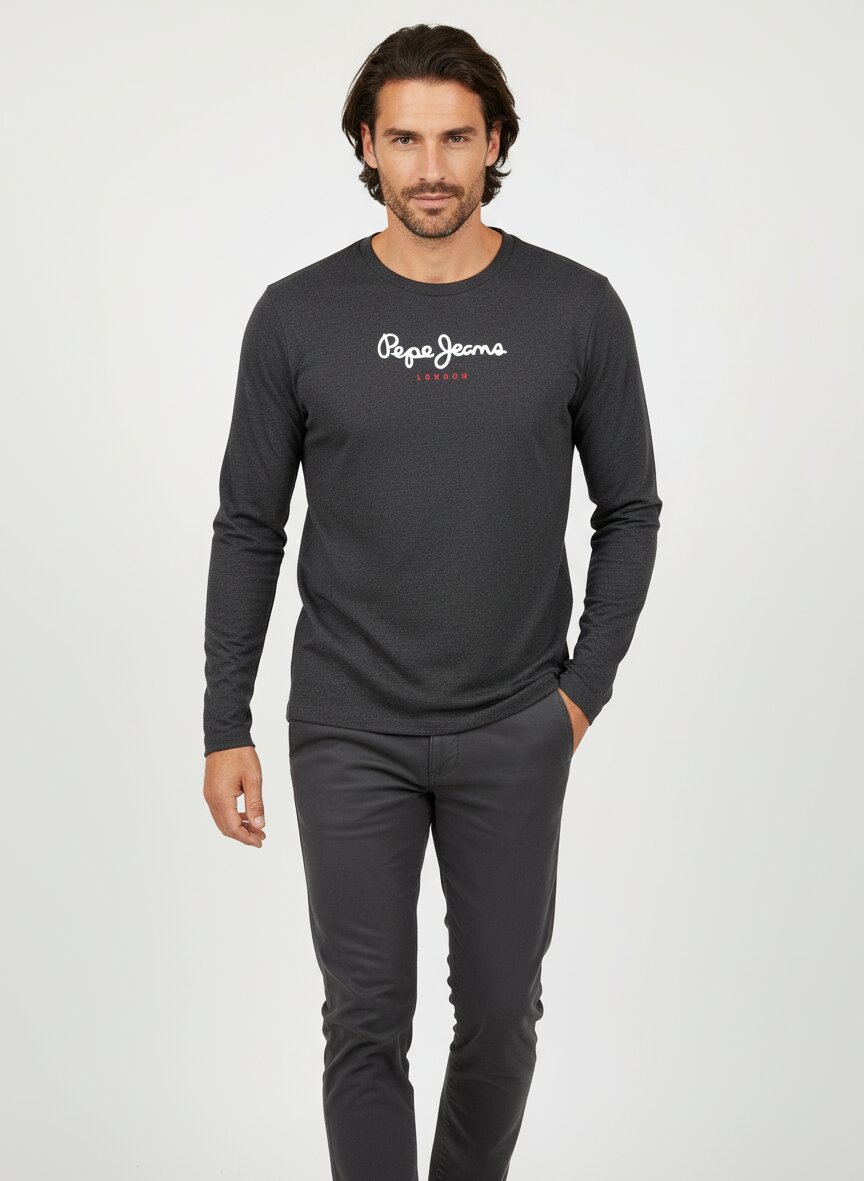 Pepe Jeans, Longsleeve Eggo, Regular Fit, Baumwolle, dunkelgrau