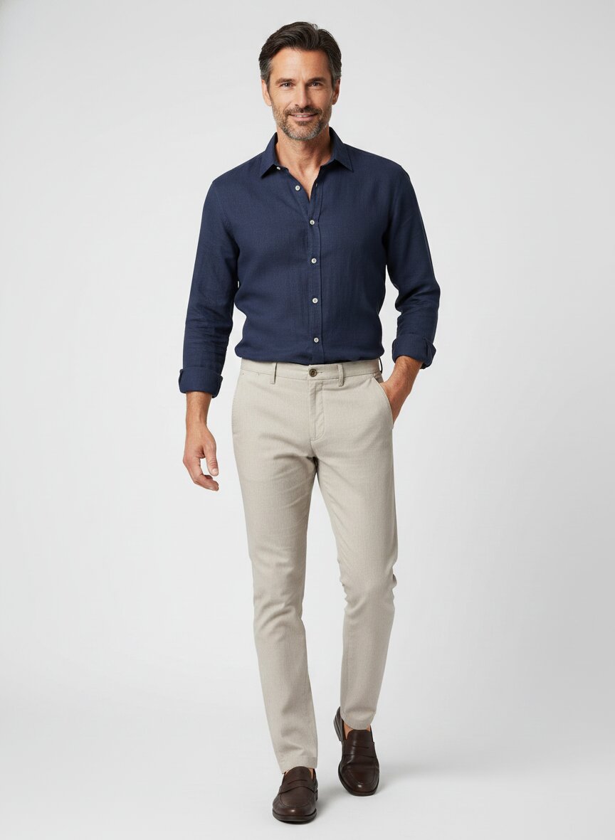 Die neutrale Farbe und die elegante Tapered-Passform machen diese Chino perfekt für Business-Casual, Freizeit und gehobene Freizeitanlässe. Sie lässt sich vielseitig mit Hemden, Poloshirts oder Blazern kombinieren.