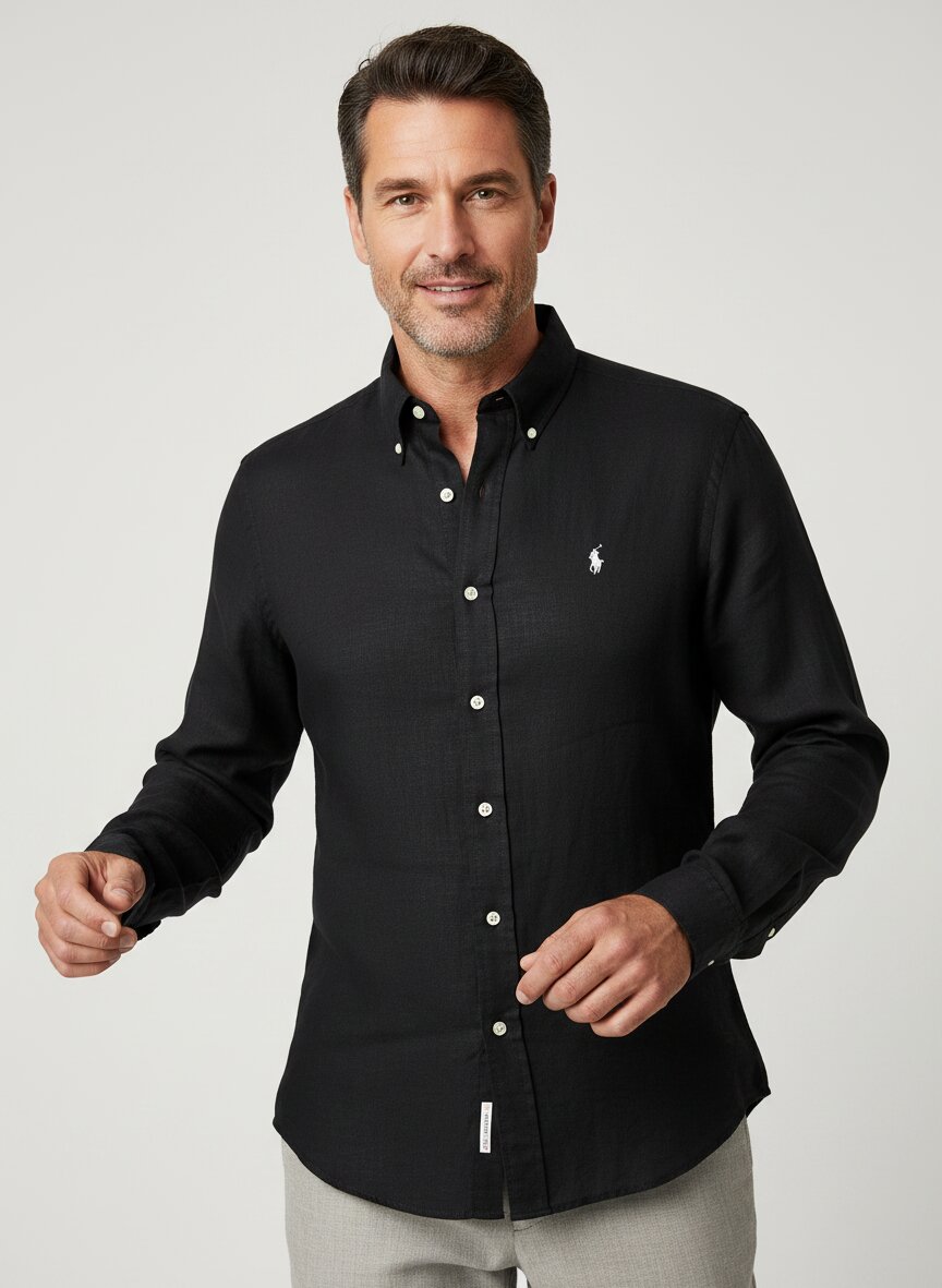 Polo Ralph Lauren, Hemd, Custom, Reines Leinen, schwarz