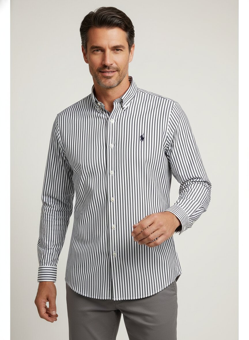 Polo Ralph Lauren, Hemd, Custom, Popeline, Button-Down, schwarz gestreift