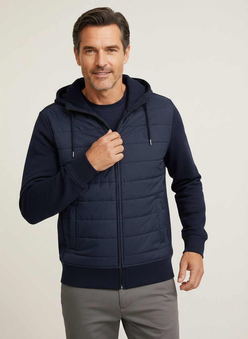 Hybrid-Jacke mit wattiertem Vorderteil in klassischem Navy