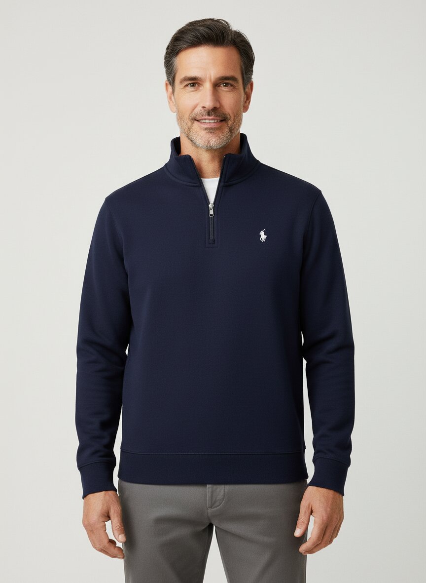 Troyer in klassischem Navy mit Stehkragen