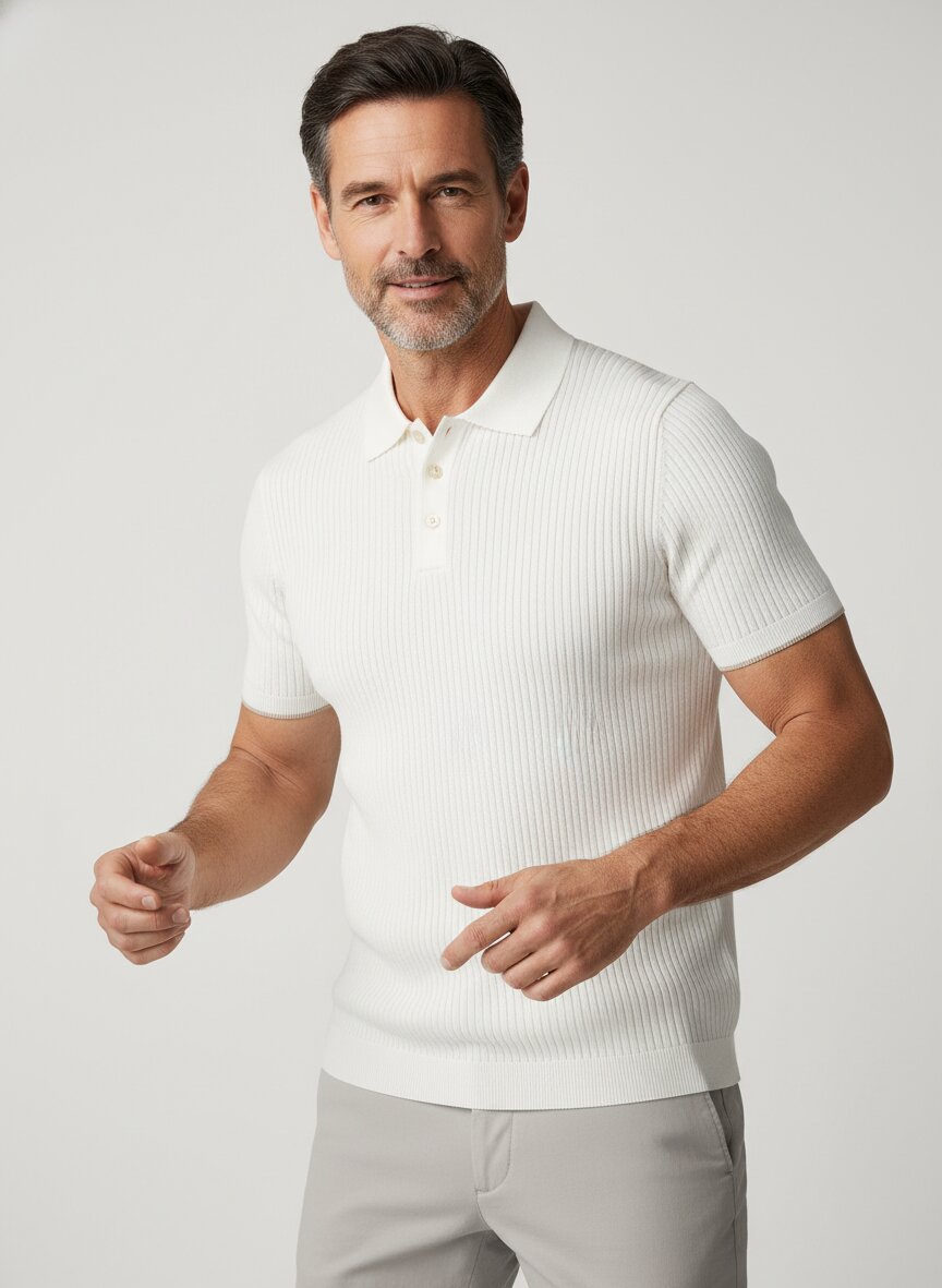 Polo-Shirt Cigio, Viskose-Strick, ecru