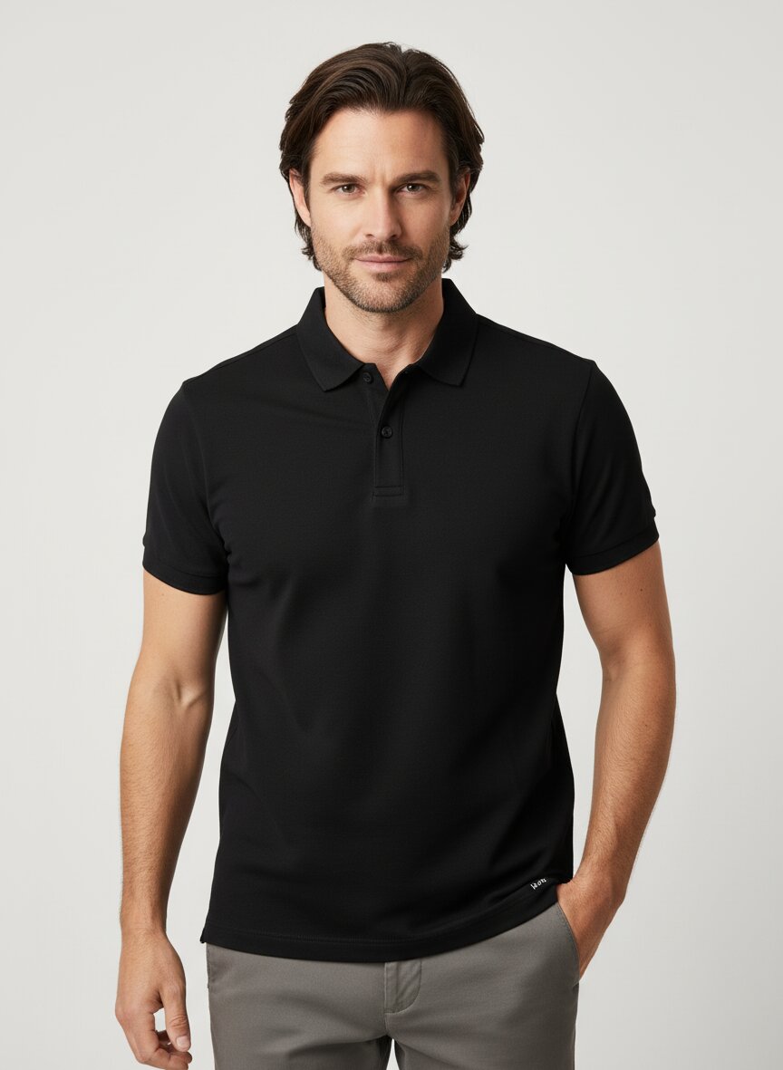 Schwarzes Performance-Polo mit Vier-Wege-Stretch