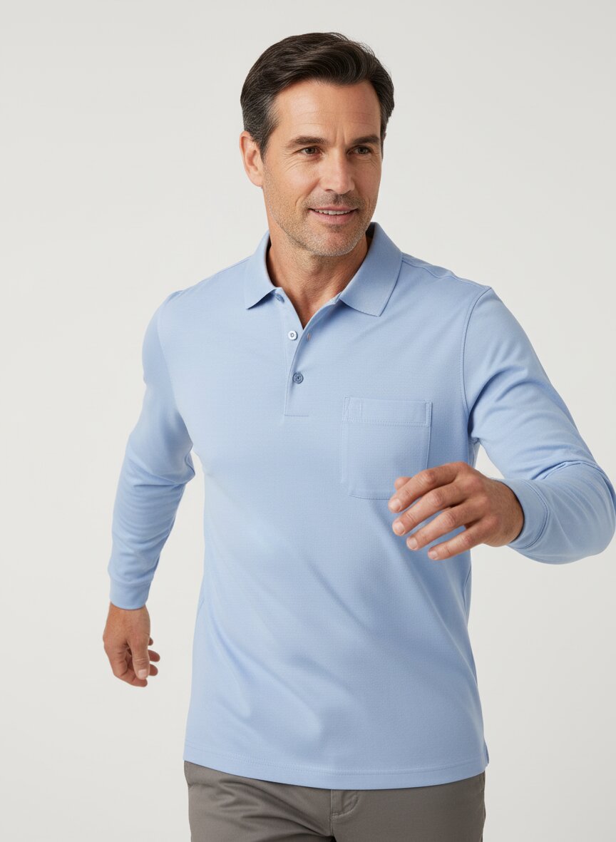 Langarm Polo-Shirt mit Knopfleiste, Brusttasche und Seitenschlitzen