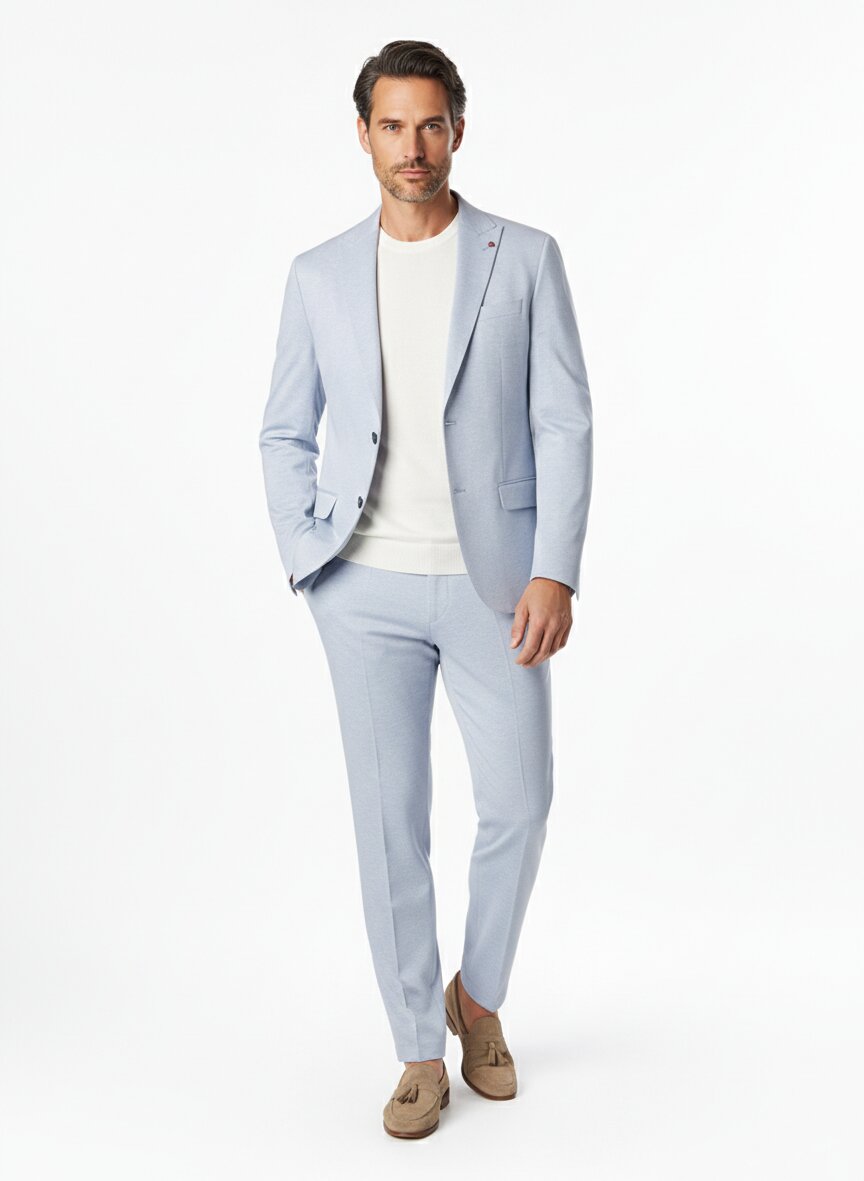 Jersey-Anzug in lebendiger Melange – Slim Fit mit Handstich-Details