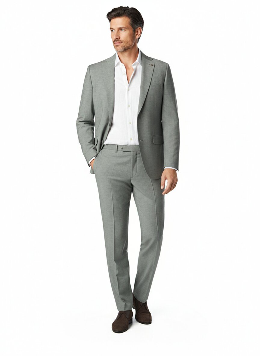 Der Anzug ist für Frühling und Sommer konzipiert. Die leichte Schurwolle-Viskose-Mischung und die hellgrüne Melange-Färbung machen ihn perfekt für wärmere Jahreszeiten geeignet.