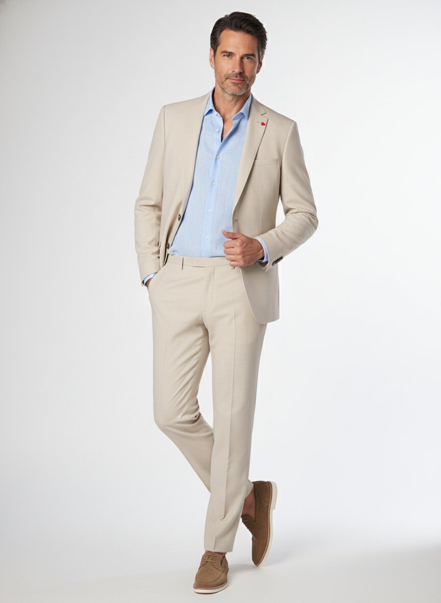 Hellbraun melierte Schurwoll-Stretch mit italienischem Schnitt