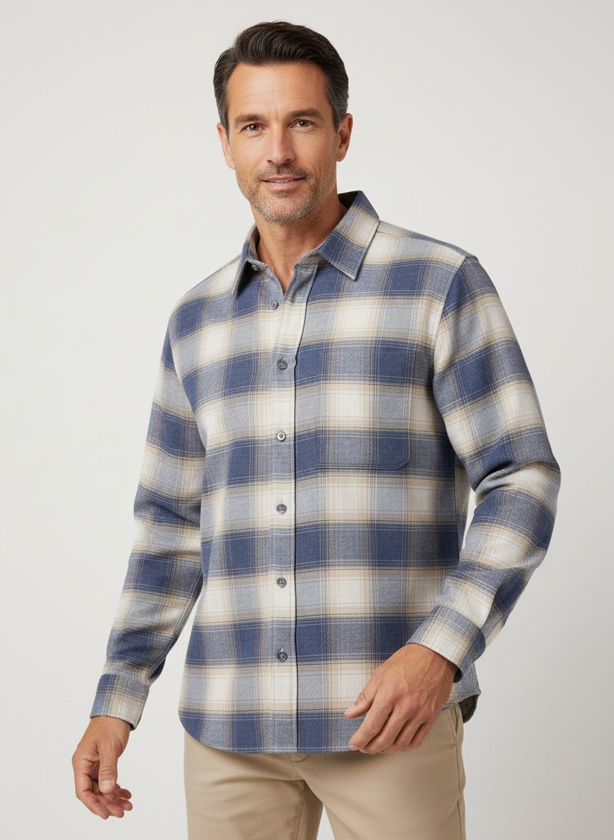 Hemd Owen1, Relaxed, Flanell, Kent, Brustasche, blau kariert