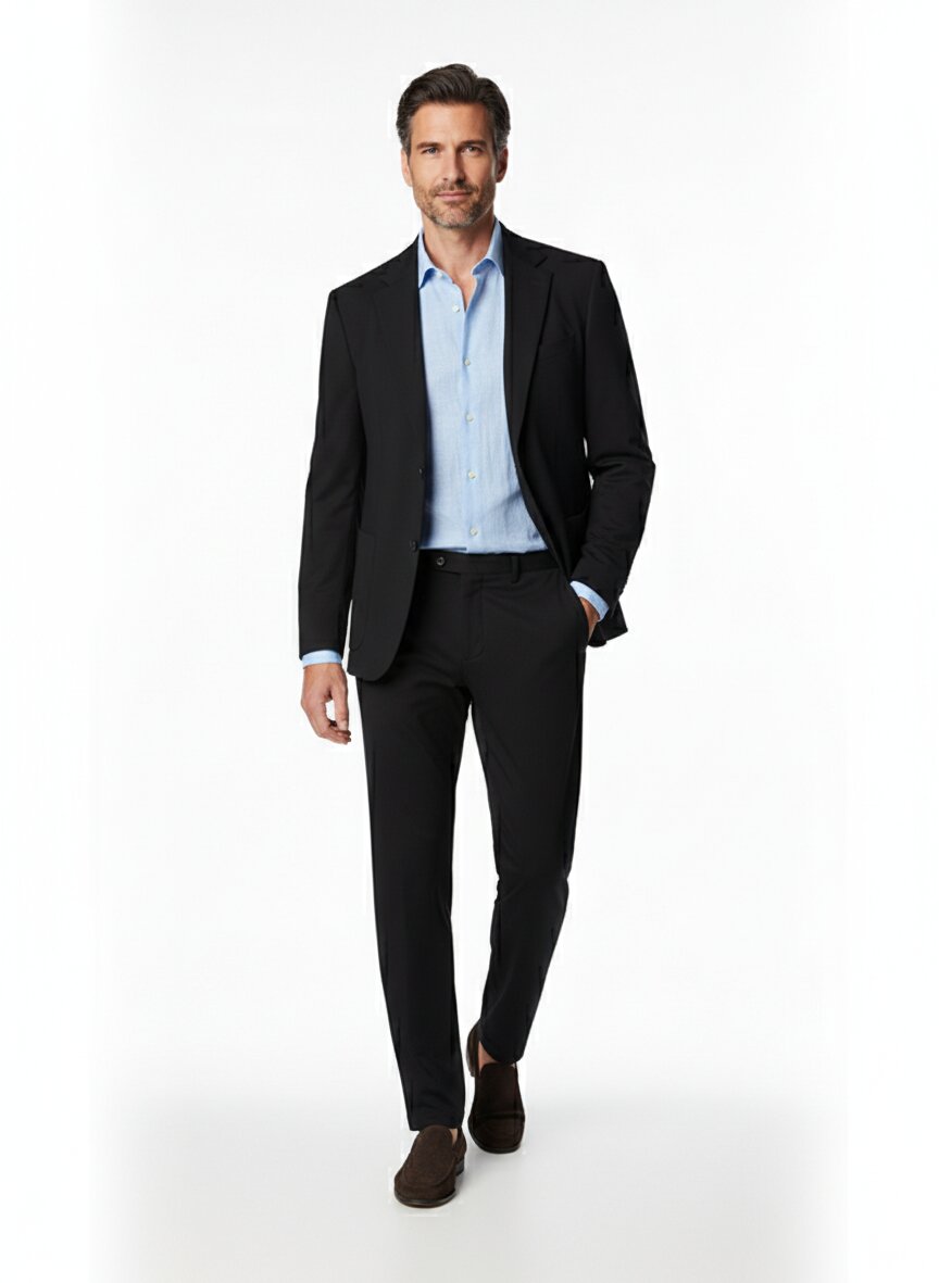 Schwarzer Jersey-Anzug mit elastischer Bewegungsfreiheit