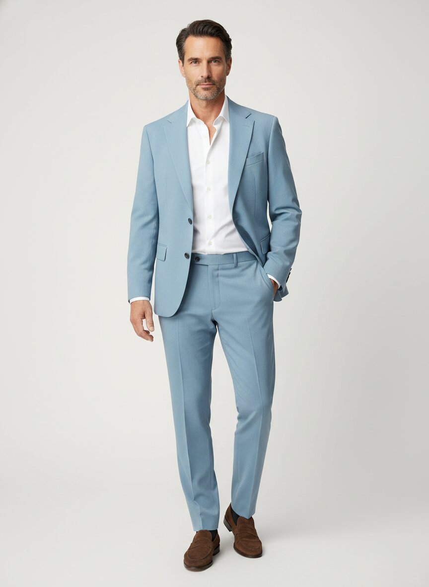 Der Woll-Stretch-Anteil ermöglicht eine verbesserte Bewegungsfreiheit und Tragekomfort, ohne dass der Anzug an Eleganz und Struktur verliert. Dies macht ihn auch für längeres Tragen angenehmer.