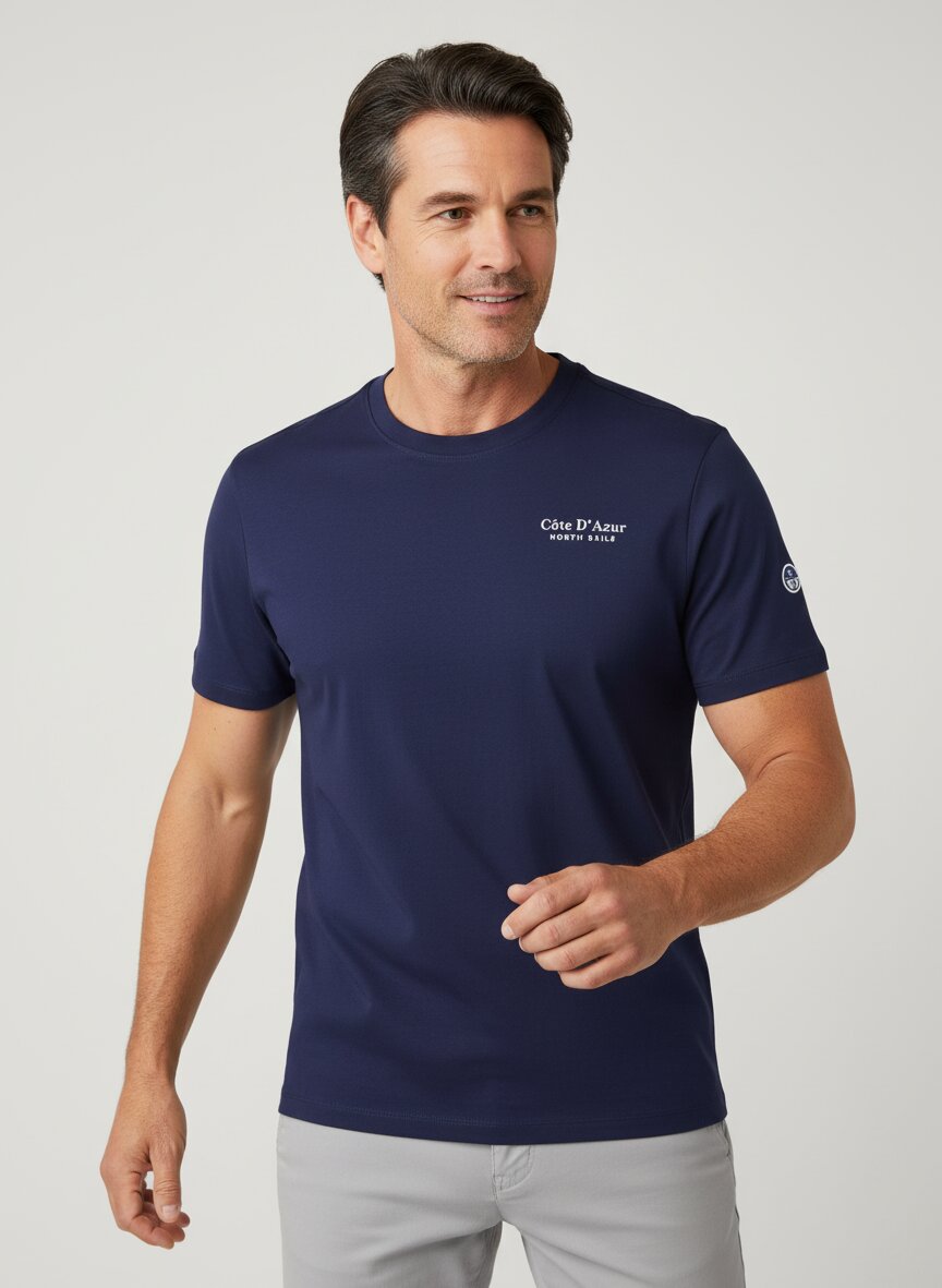T-Shirt mit Rückenprint, Baumwolle, navy