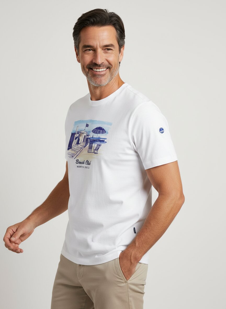 T-Shirt mit Rückenprint, Baumwolle, weiß