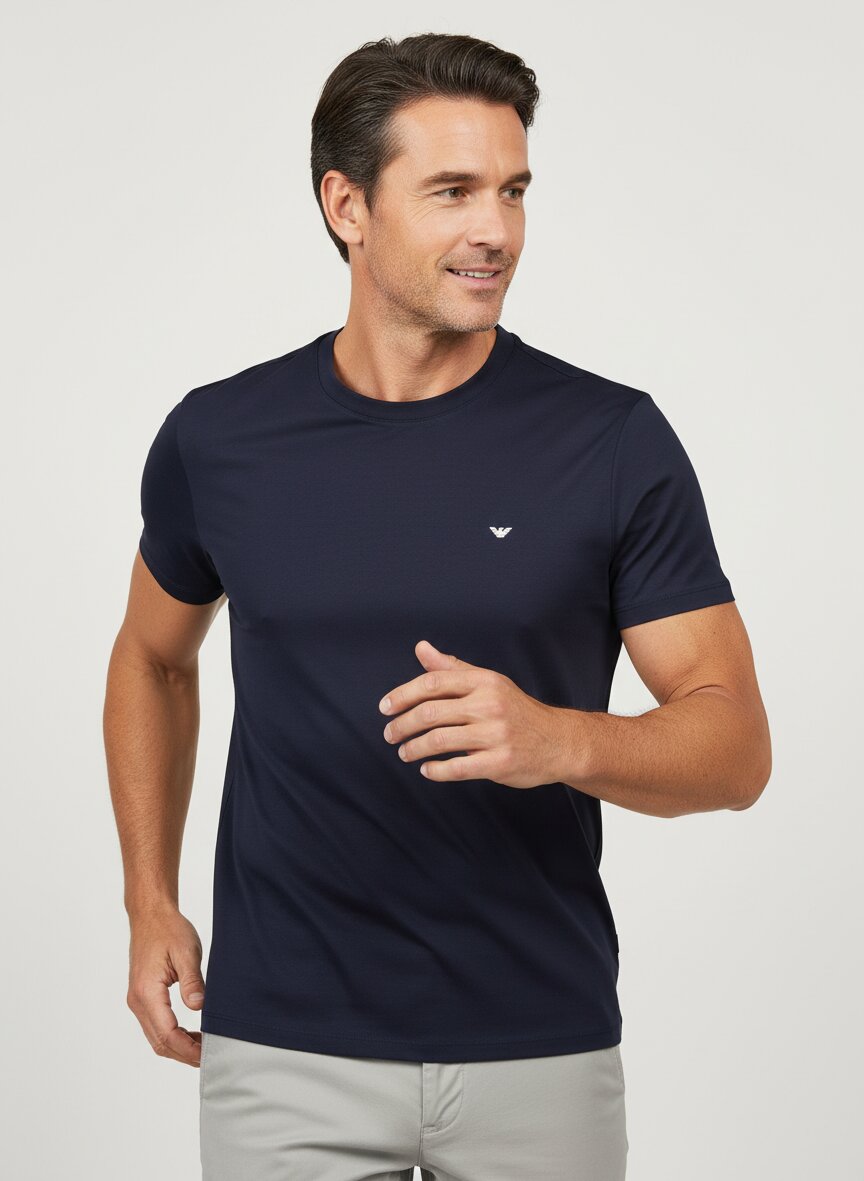 T-Shirt, Regular Fit, Lyocell-Baumwolle, navy