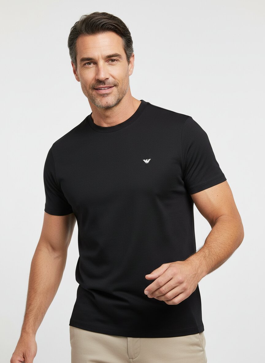 T-Shirt, Regular Fit, Lyocell-Baumwolle, schwarz