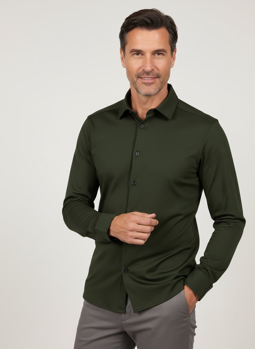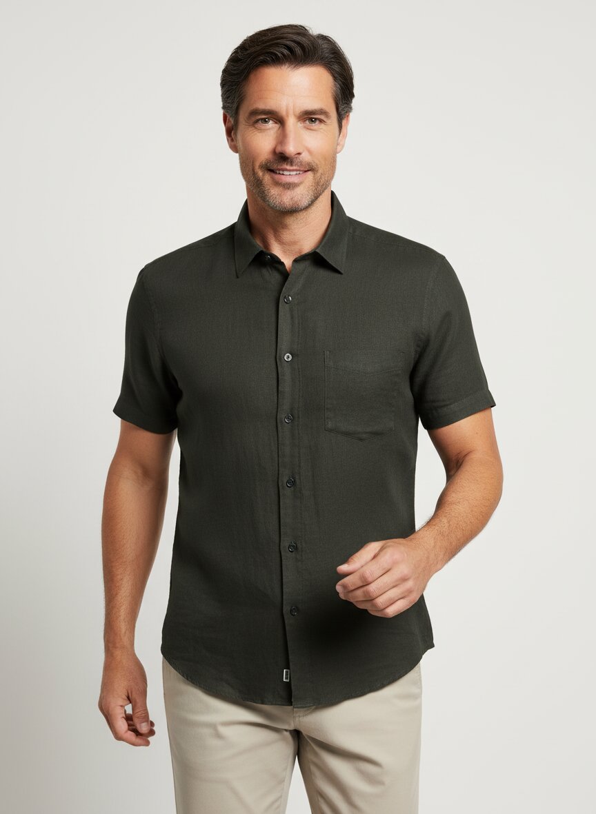 Kurzarmhemd Lykos, Reines Leinen, Button-Down, Brusttasche, dunkelgrün