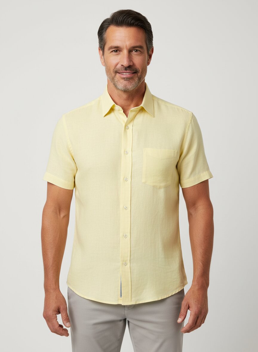 Kurzarmhemd Lykos, Reines Leinen, Button-Down, Brusttasche, zitrone
