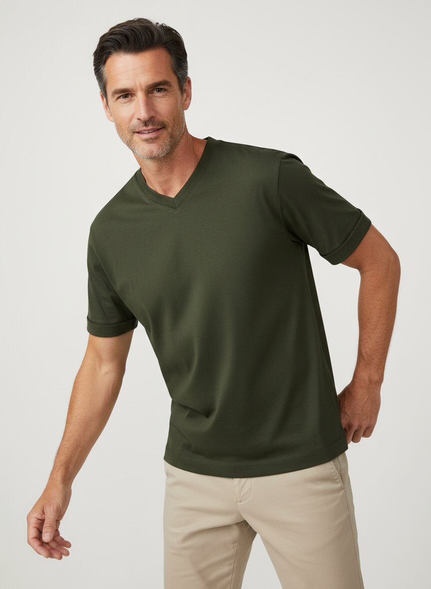 T-Shirt Tiam, Baumwoll-Jersey, oliv