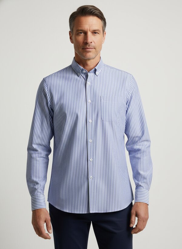 Blau-weiß gestreift mit charaktervollem Button-Down-Kragen